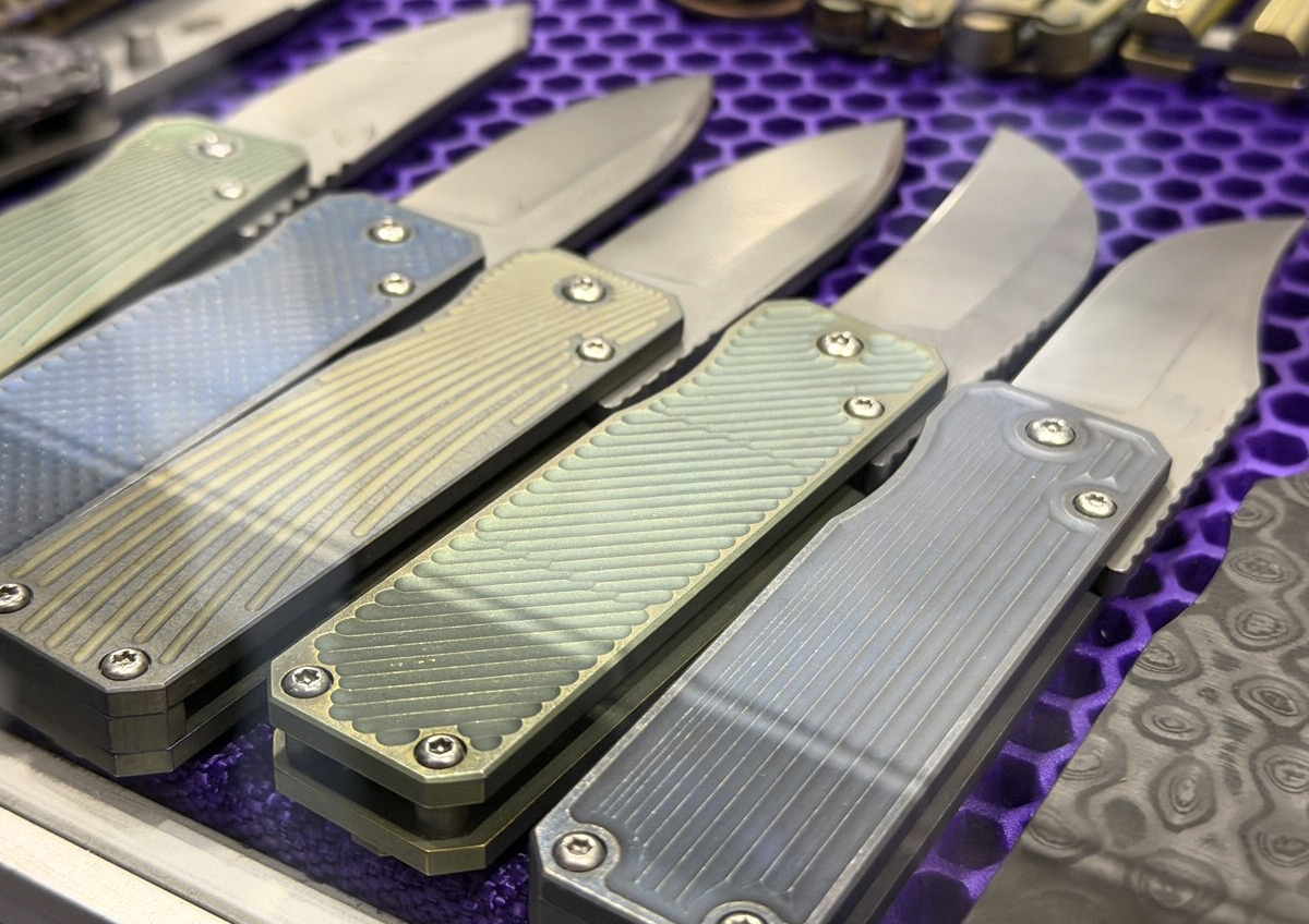 — Есть шикарный материал – титан. Он прекрасно подходит для ножей, обладает отличными свойствами, модный, даёт разные цвета, есть множество способов обработки. На мой взгляд, титан для ножей наиболее подходящий. Если бы можно было без специальной сертификации использовать золото или серебро, мы бы, наверное, думали и в этом направлении, а так пользуемся в основном титаном.