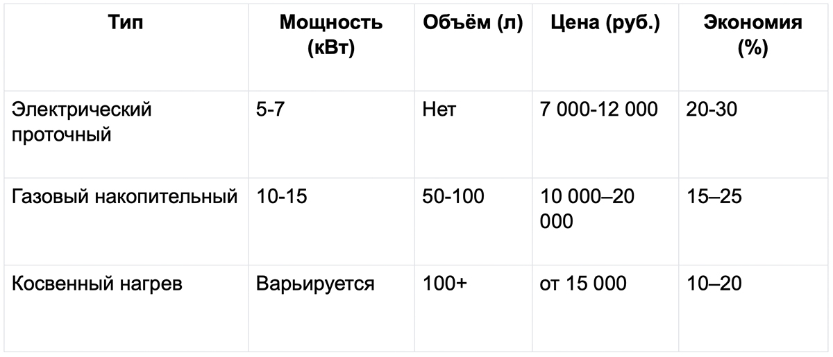 Экономить на горячей воде можно разными способами — и вовсе не обязательно отказываться от привычного комфорта. Проточные нагреватели лучше всего подходят для небольшого потребления, накопительные бойлеры удобны для семей, где расход воды выше, газовые устройства выигрывают за счёт более дешёвого топлива, а косвенные модели отлично дополняют систему отопления.
