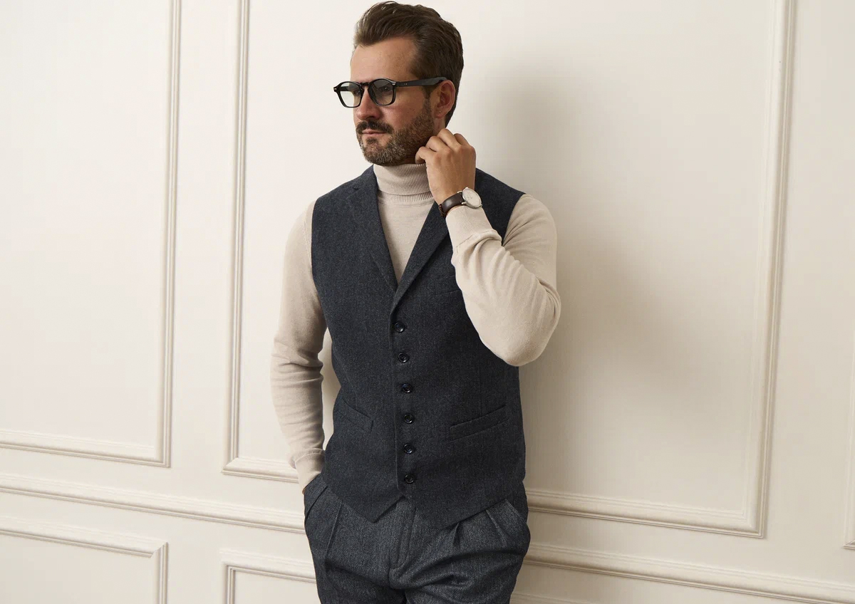 — Здесь важно помнить, что мода всегда циклична. Примерно каждые двадцать лет она возвращается к прошлым тенденциям, но уже в новом прочтении. Для моды характерно представление давно знакомых идей как некого свежего откровения. И, надо признать, нередко это происходит весьма убедительно. Сегодня мы как раз наблюдаем такое возвращение. В мужском костюме снова востребованы более свободный и естественный силуэт, мягкая конструкция пиджака, двубортные модели, брюки с защипами и более высокой линией талии, выразительная фактура тканей, глубокие благородные оттенки — коричневый, винный, серо-зеленый, темно-синий. При этом костюм все чаще сочетается с тонким трикотажем, водолазкой или рубашкой более мягкого материала. Иными словами, вектор мужской моды сегодня — это зрелая элегантность: сдержанная, уверенная, современная. Костюм снова становится важной частью гардероба, но уже не как символ жесткого дресс-кода, а как знак вкуса, внутренней собранности и уважения к себе.